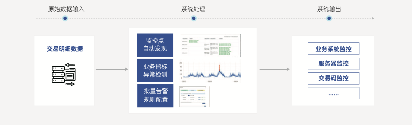 本场景通过自适应业务的智能监控算子,基于对报文明细数据的聚合计算分析自动生成从系统级到IP级再到交易码级的多种颗 粒度的模型,提供系统级、服务器级、交易码级三级业务监控粒度,大幅提升监控范围及颗粒度。