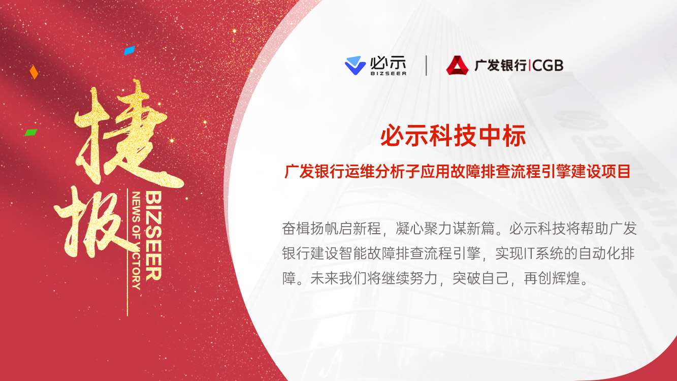 数字经济浪潮下,运维场景的智能化备受市场青睐。近日,必示科技中标广发银行股份有限公司运维分析子应用故障排查流程引擎建设项目。